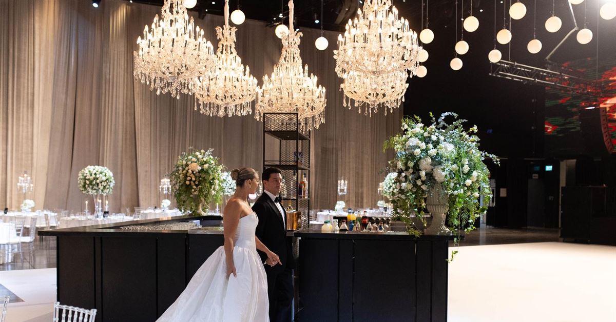 ויש גם את החלק המרגש של העיצוב: שנדלירים מרשימים, פרחים לבנים עם נגיעות ירוקות, תקרת קריסטלים זוהרת וחופה עגולה על המים עם כתר גיבסניות טבעיות שנראתה כמו פנטזיה. "המעצב של האולם היה פשוט מדהים וקשוב. דודו גבאי דאג להגשים לי חלום."