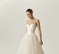 סטרפלס שחושפת רגל בהשראת שמלת האוסקר שלבשה לאחרונה", אומר רונן פארצ'ה. "זו שמלת אוסקר לכל דבר, אבל נוסף לה טאצ' של כלה. היא תמיד נראית כאילו היא באוסקר, ולכן החתונה הזו היא למעשה האוסקר הפרטי שלה. השמלה עשויה משיפון משי משולב בסטן משי, והיא חשופה מקדימה במידה. בכוונה לא יצרתי אותה פרובוקטיבית, אלא מחמיאה לחזה. זו שמלה מאוד נשפכת ורכה, והגזירה האלכסונית מעדנת אותה עוד יותר.